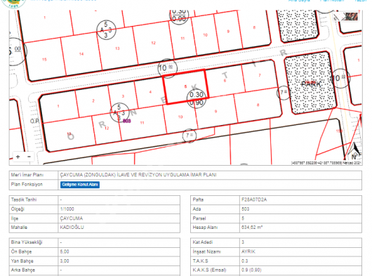 Çaycuma'ın en güzel yerinde 3 kat imarlı toplam 430 m2 alanı vardır.